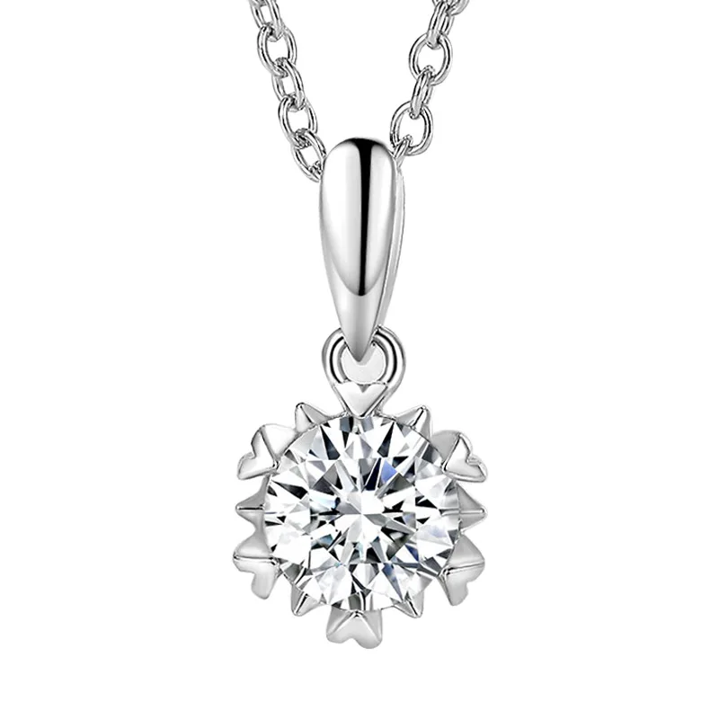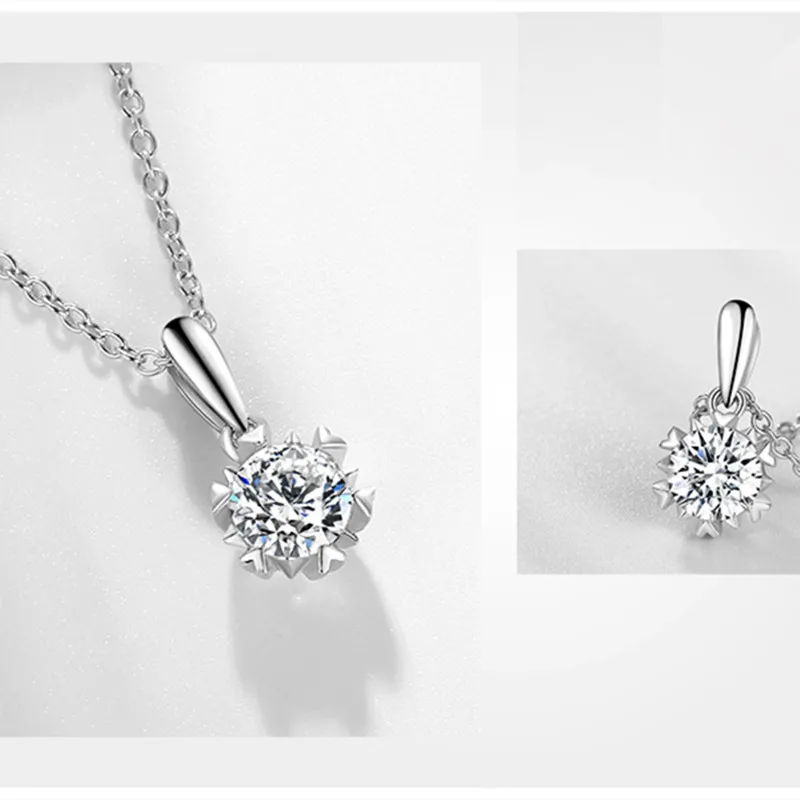 925 Silver Cubic Zirconia Pendant Necklace This necklace is a delicate yet elegant piece. It is made of silver and adorned with Round cubic zirconia. The necklace is 45cm long. The cubic zirconia pendant is 1.6 x 0.8 cm