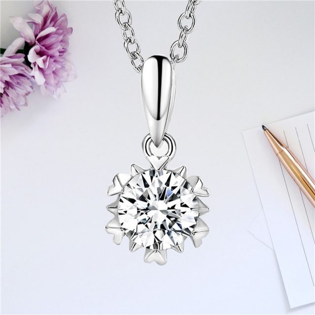 925 Silver Cubic Zirconia Pendant Necklace This necklace is a delicate yet elegant piece. It is made of silver and adorned with Round cubic zirconia. The necklace is 45cm long. The cubic zirconia pendant is 1.6 x 0.8 cm