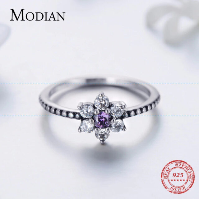 A delicate sterling silver ring with a single purple crystal flower. The petals are crafted with amazing detail and the setting is beautiful. This is a delicate piece of jewelry that will catch anyone’s eye.