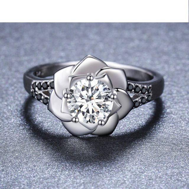 Black Spinel Flower Ring