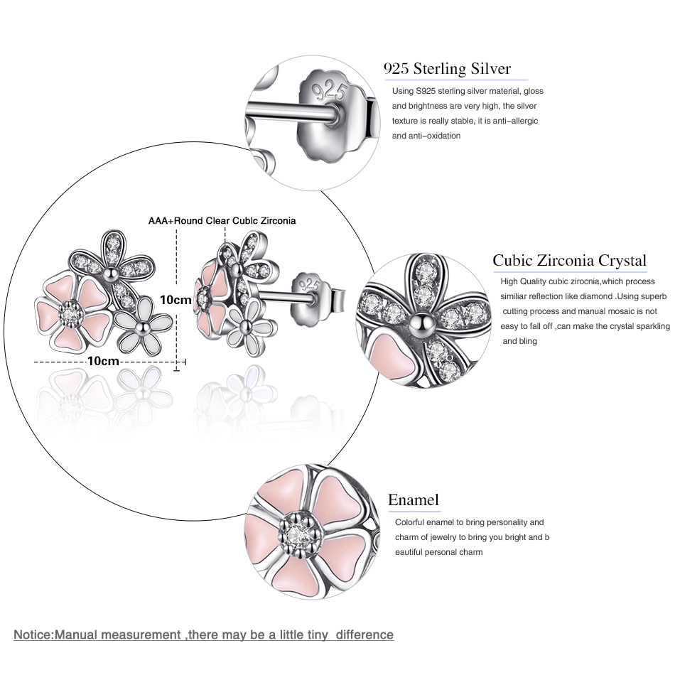 Cherry Blossom Stud Earring Light pink cherry blossom stud earrings are a beautiful accessory for any occasion. These earrings are made from sterling silver and adorned with beautiful pink cherry blossoms. The studs are set in a pair of four leaf clovers and hang from french wires. These earrings would make a perfect gift for any loved one.