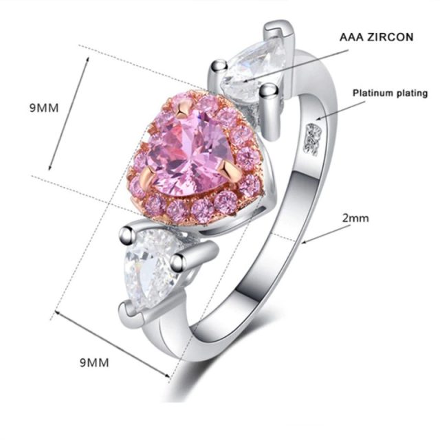 Pink Heart Cubic Zirconia Ring:  This ring is a beautiful accessory to add to your jewelry collection. The sterling silver band has a cubic zirconia heart in the center that is a vibrant pink color. The cubic zirconia stone is a beautiful shade of pink that will go with any outfit.