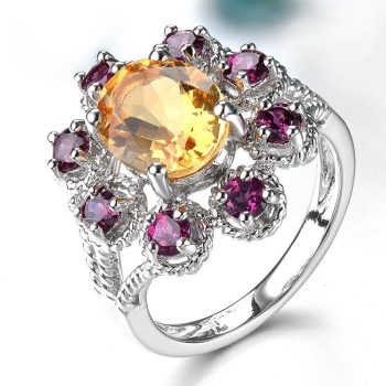 Citrine Amethyst Garnet Solid Sterling Silver Ring