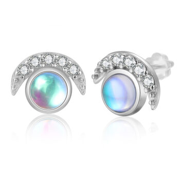 Cubic Zirconia Paved Moon Stud Earrings