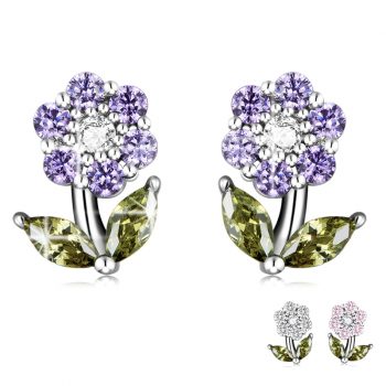 Flower Stud Earrings Platinum Plated