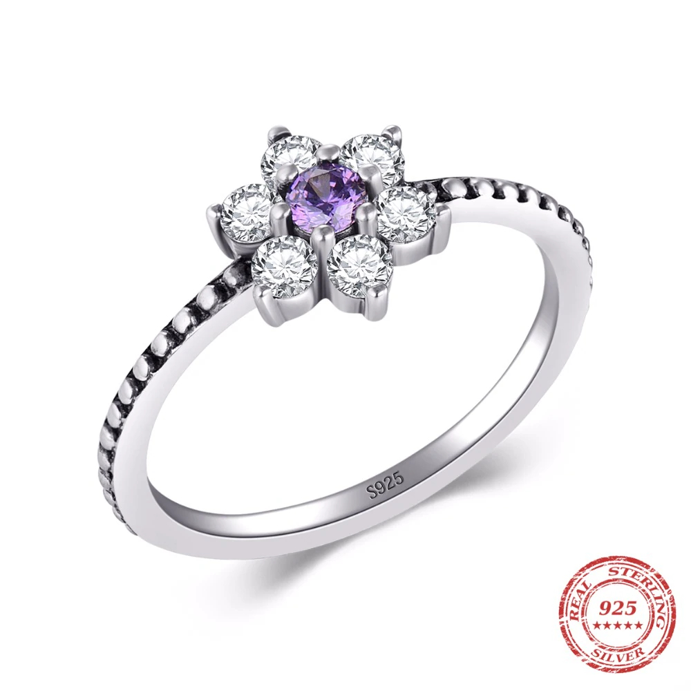 A delicate sterling silver ring with a single purple crystal flower. The petals are crafted with amazing detail and the setting is beautiful. This is a delicate piece of jewelry that will catch anyone’s eye.