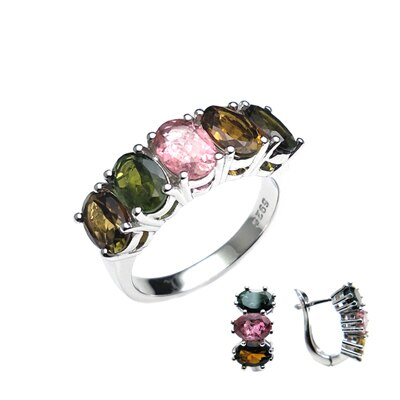 Item:925 silver Rings/ Earring with natural fancy tourmaline