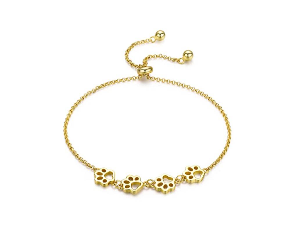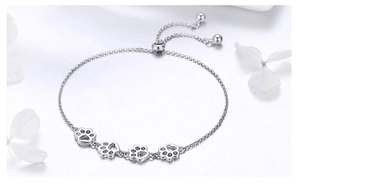 Women’s 925 Sterling Silver Paws Bracelet: This sterling silver bracelet is made with high quality silver. It features a row of 4 paw prints. The bracelet is made with one size, but the size can be adjusted to fit most wrist sizes.